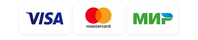 Вы можете оплатить заказ или внести предоплату с помощью банковской карты через Интернет. К оплате принимаются карты Visa, MasterCard и МИР.